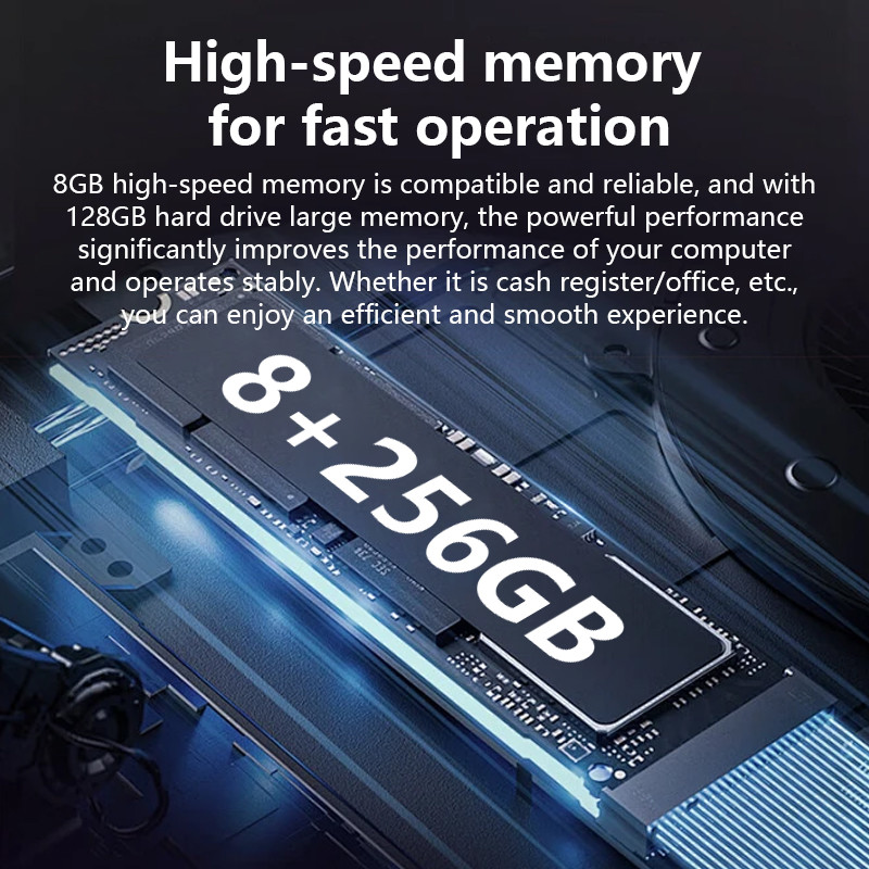 Avec 8 Go de RAM et un SSD de 256 Go rapide, ce terminal de point de vente assure un multitâche fluide, un accès rapide aux données et des performances stables en cas de charges de travail importantes. La mémoire de 8 Go permet un fonctionnement transparent de plusieurs applications de point de vente, tandis que le disque SSD de 256 Go offre un stockage suffisant pour les bases de données d'inventaire, les enregistrements de transactions et les données client — le tout avec des temps de démarrage plus rapides et une réactivité du système améliorée. Cette configuration est idéale pour les magasins de détail à fort volume, les supermarchés, les restaurants et les centres d'affaires.