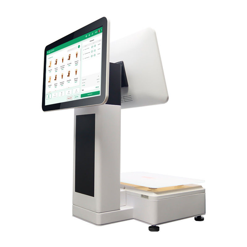 Système de point de vente de supermarché 15.6 pouces double écran tactile avec imprimante à grande échelle intégrée Protocole sans fil NFC Interface VGA 1