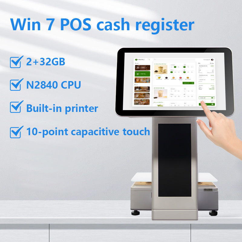 Système de point de vente de supermarché 15.6 pouces double écran tactile avec imprimante à grande échelle intégrée Protocole sans fil NFC Interface VGA 7