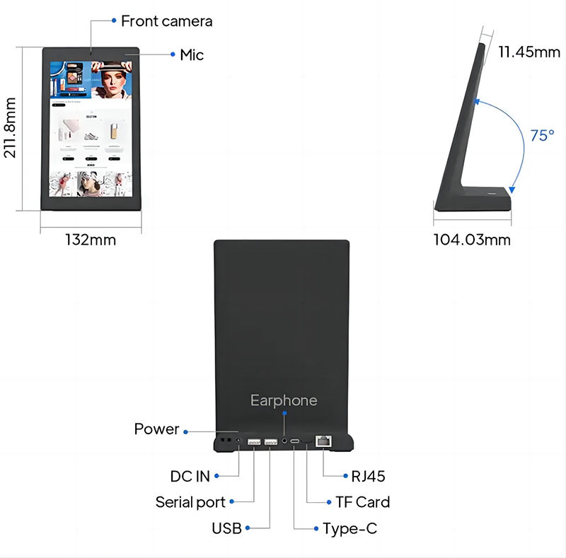 Cette tablette PC Android en forme de L de 8 pouces, une tablette verticale de bureau, excelle en tant que borne libre-service, outil de commande pour restaurants et évaluateur commercial. Parfait pour les restaurants, les hôtels et les banques, elle allie fonctionnalité et ergonomie pour rationaliser les